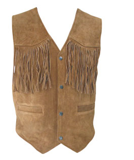gilet western en cuir suédé, avec franges