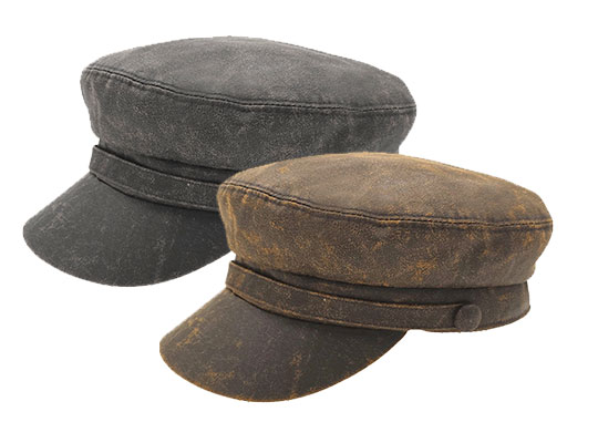 casquette biker-pĂȘcheur, en cuir coton stonewashĂ©