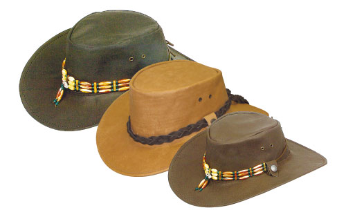 brand JACARU AUSTRALIA buffalo leather hat squashable, waterproof removable hatband colors : black, brown, sand sizes : S, M, ML, L, XL