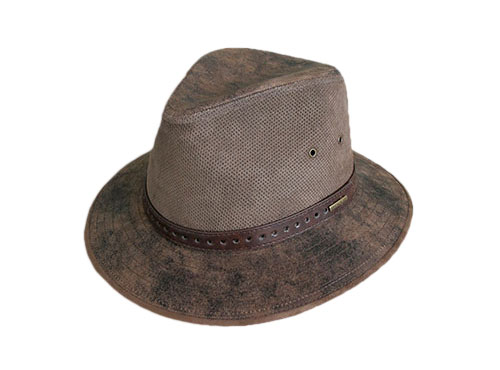 hat made with vintage leather, perforated crown