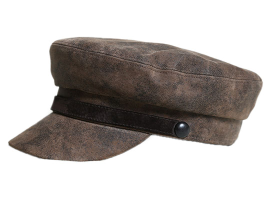 biker-fisherman cap, made with washed pigskin